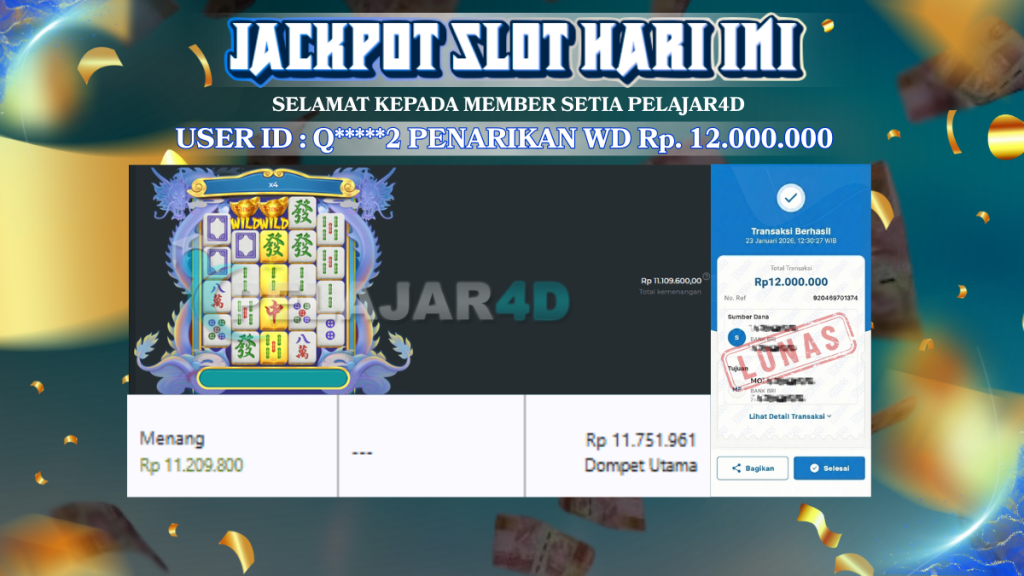 Dengan jutaan pengguna aktif, PELAJAR4D telah menjadi pilihan utama para pecinta permainan digital di tanah air. Platform kami di lengkapi dengan sistem enkripsi tingkat tinggi, proses transaksi yang cepat dan transparan, serta berbagai bonus dan promosi menarik setiap harinya untuk meningkatkan pengalaman bermain Anda.
