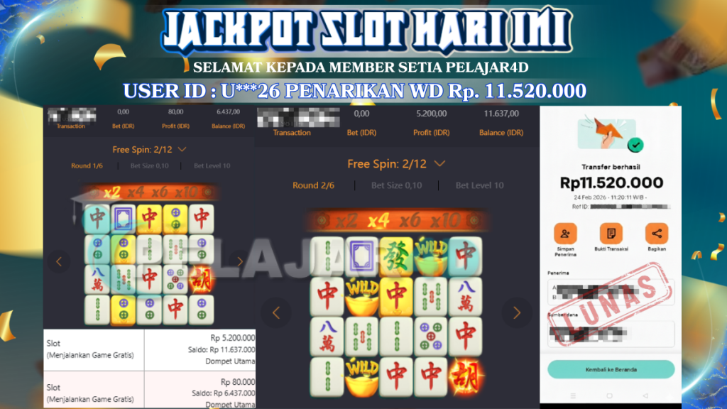 Jackpot Hari ini Di Slot Pg Soft Game Mahjong Ways Rp 11.520.000