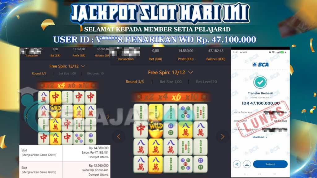 Jackpot Hari ini Di Slot Pg Soft Game Mahjong Ways Rp 47.100.000